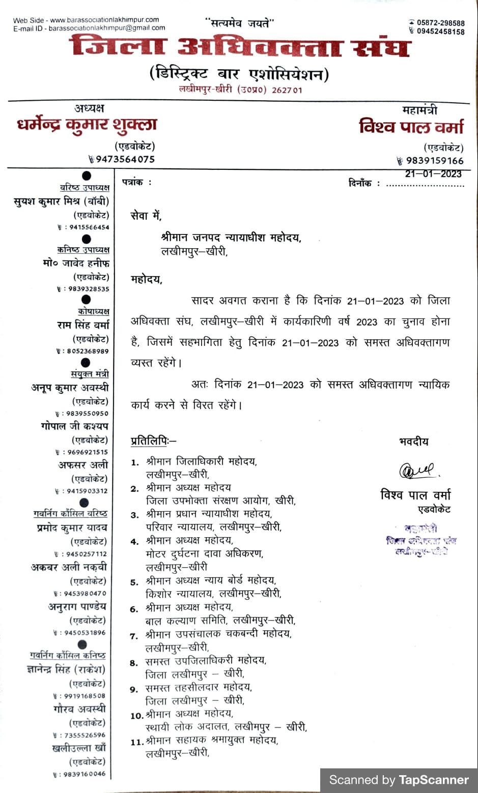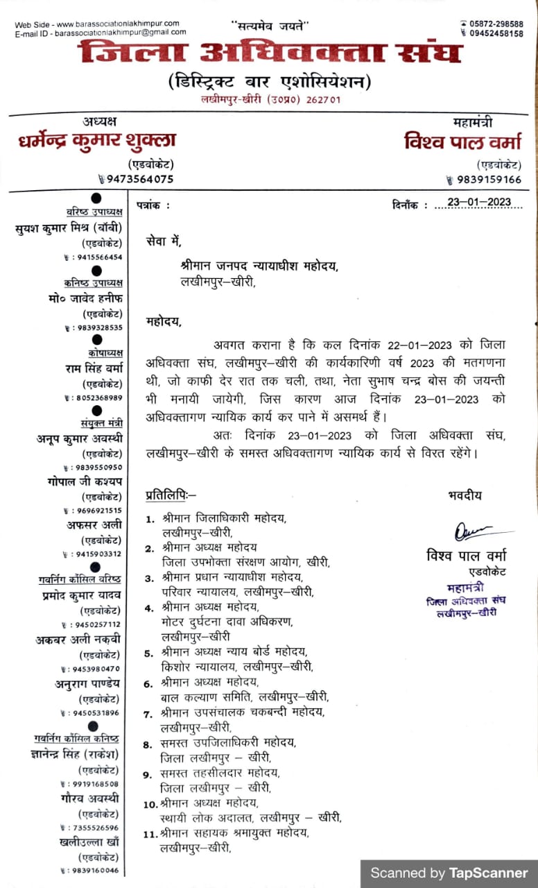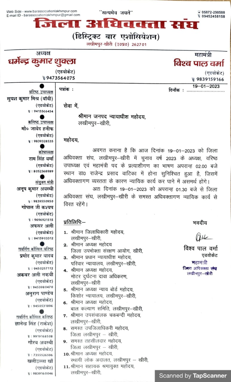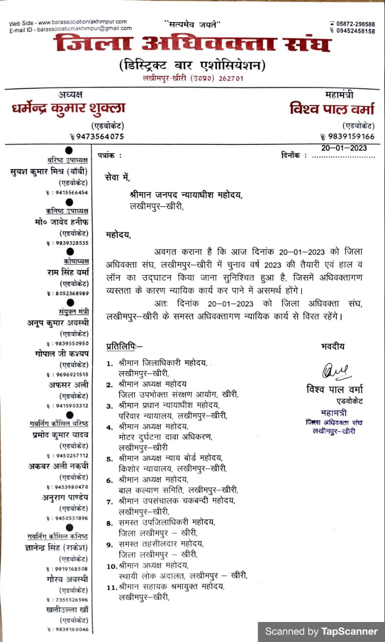 दिनांक 20.01.2023 चुनाव तैयारी हेतु अधिवक्तागण न्यायिक कार्य से विरत